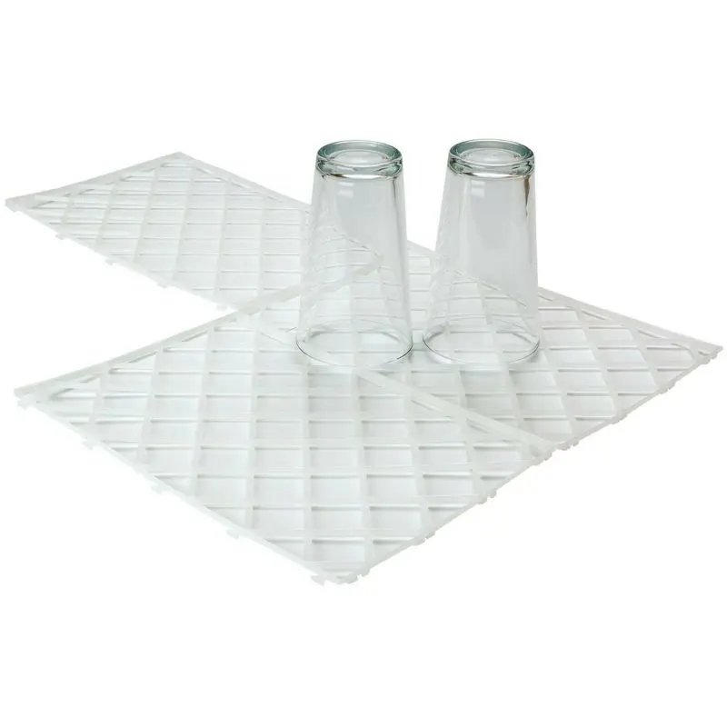 What you’ll receive is a set of 10 x Interlocking Glass Mats crafted from clear, durable plastic. Measuring 8″ x 12″, these pub bar liner shelf mats provide a protective and hygienic surface for drying glassware. Their interlocking design allows for easy customisation to fit any shelf size, ensuring a secure and organised space.