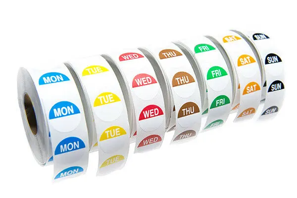 • Supplied in rolls of 1,000 day dot stickers per day, with full week sets totalling 7,000 labels for high-volume use.