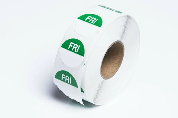 20mm round food label day dots are small paper date labels used to mark the day food was prepared or stored. They help businesses manage food rotation and maintain hygiene standards.