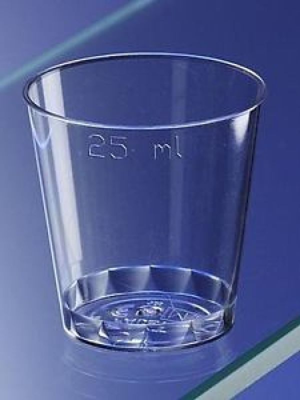 These 25ml to brim plastic shot glasses are a great alternative to glass. Safer to use and help prevent over-pouring in busy bars.