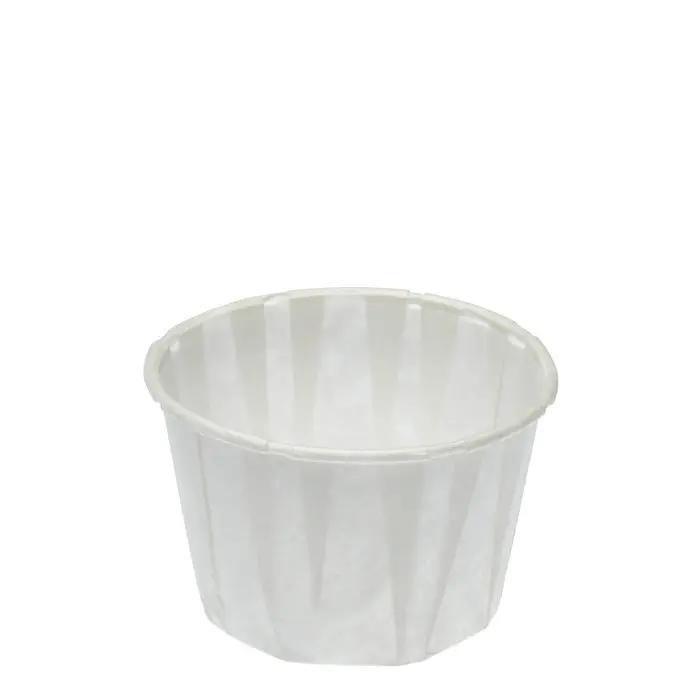 These 2oz compostable paper ramekin souffle pots are a great eco-friendly alternative to plastic.