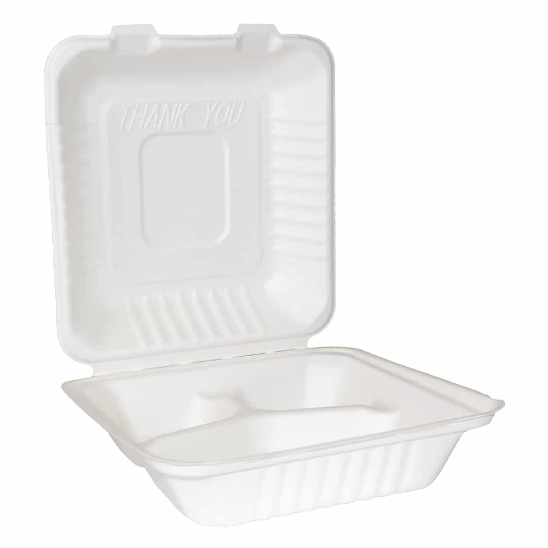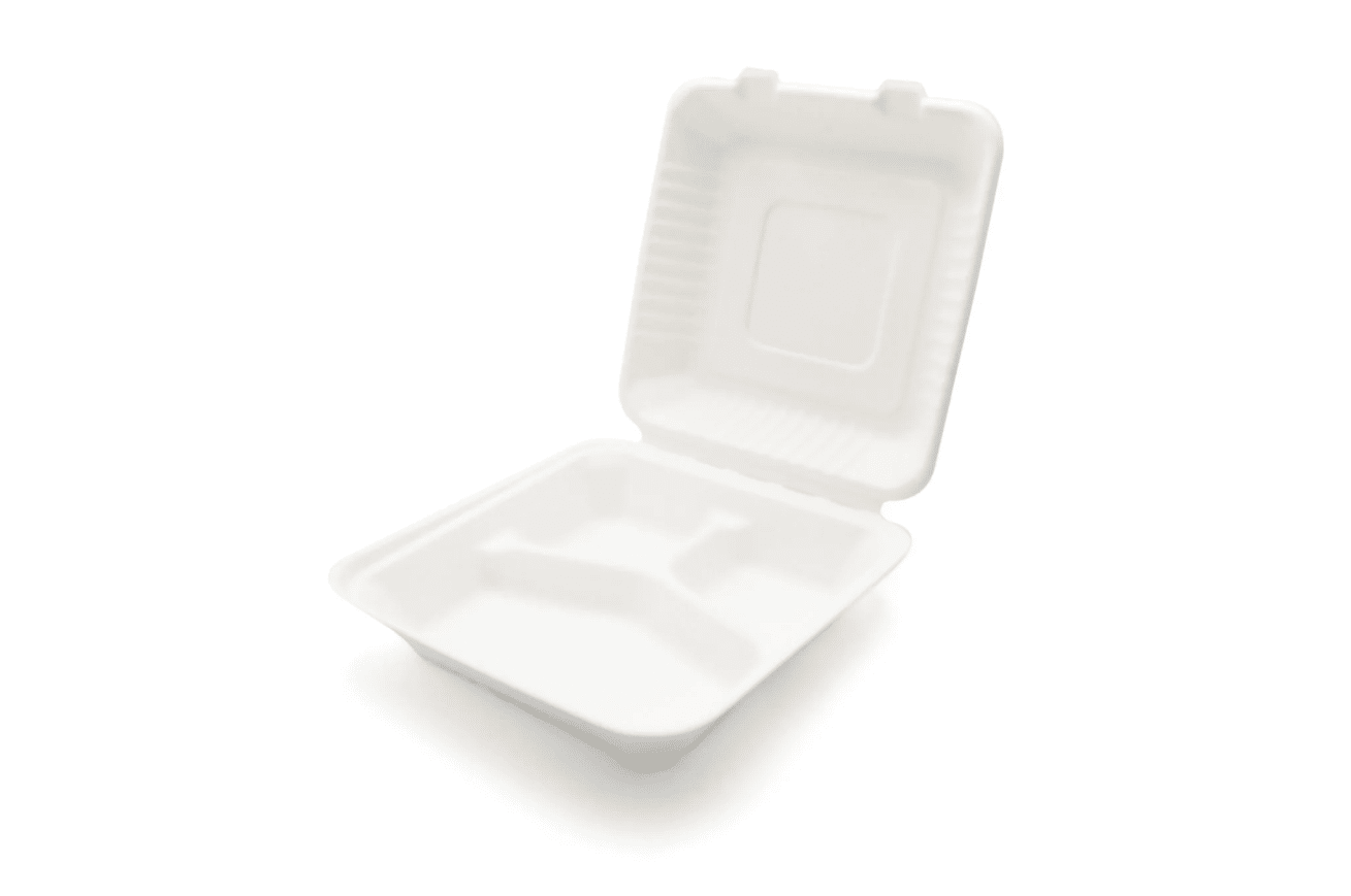 3 Compartment 9×9 inch Bagasse Clamshell Food Box