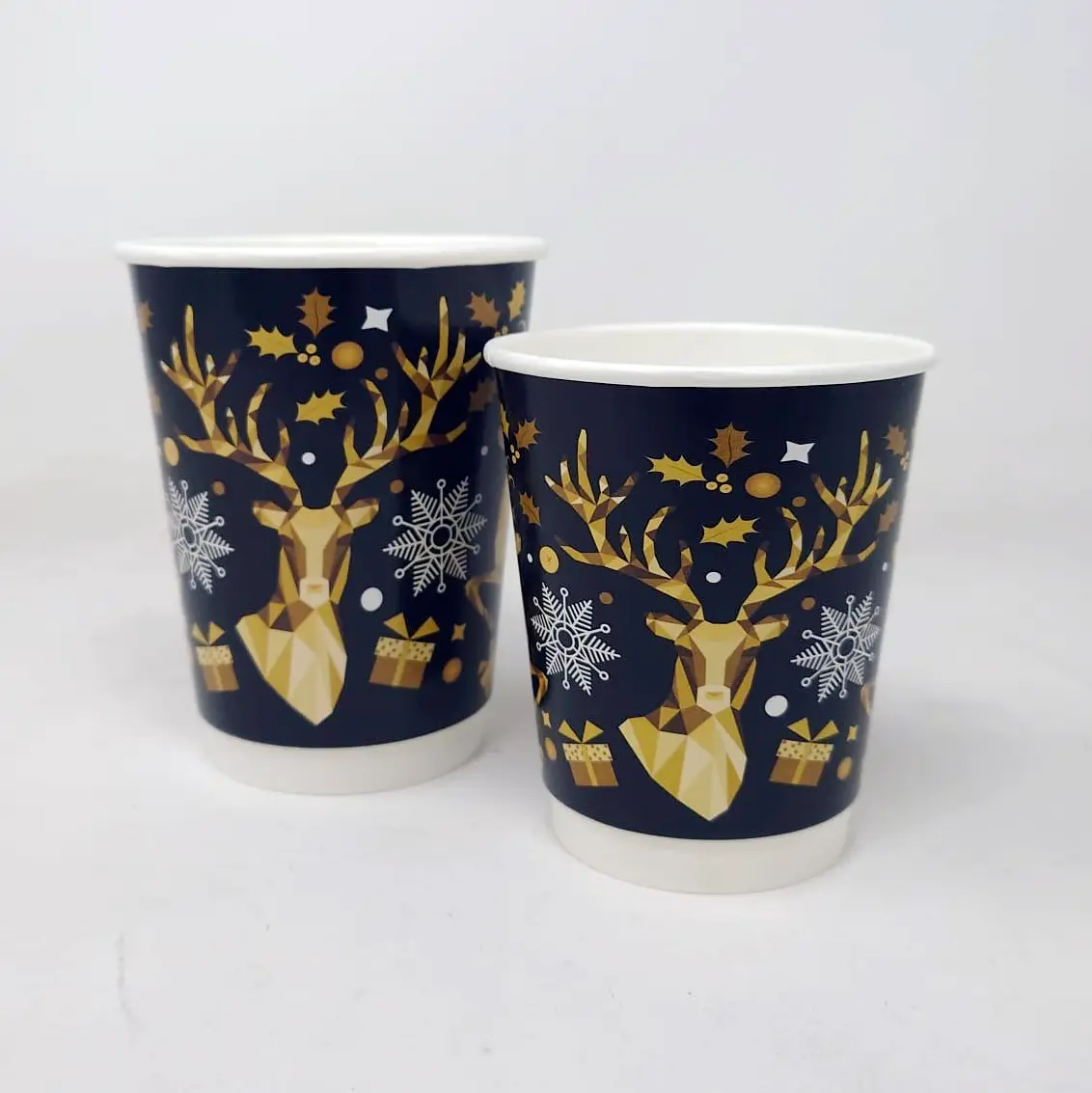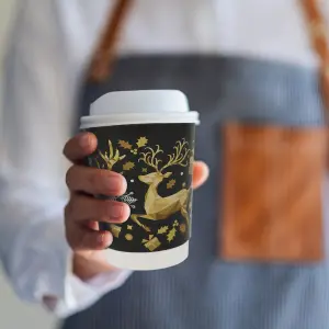 Exclusive 8oz Christmas Paper Coffee Cups are double-walled disposable cups made from recyclable paper, designed to keep drinks hot, protect hands, and add festive seasonal presentation to takeaway beverages.