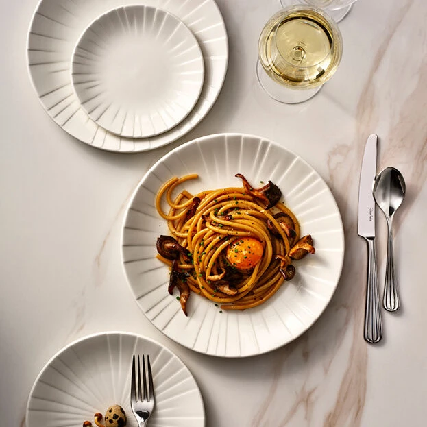 - Elegant white finish: Complements all cuisines and tableware collections