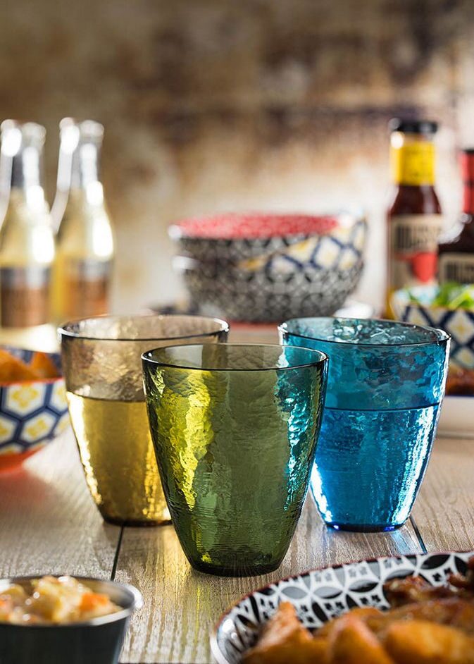 Beautifully textured glassware in four stunning colours. Great individually, even better as a mix and match collection. Also dishwasher safe.