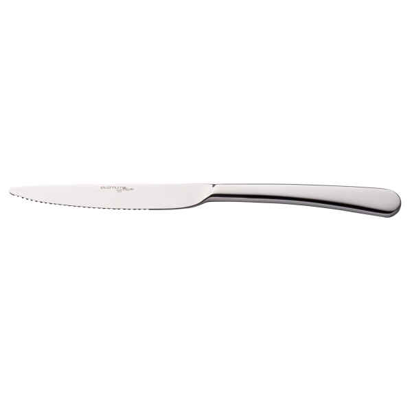 Introducing the Ascot Steak Knife – Pack of 12. Each knife is expertly crafted from high-shine 18/10 stainless steel. Part of the Eternum Ascot range, these knives boast a modern, elegant design and are perfectly balanced for a comfortable grip, further enriching the dining experience for your guests. Ensure every steak is enjoyed with ease and elegance.