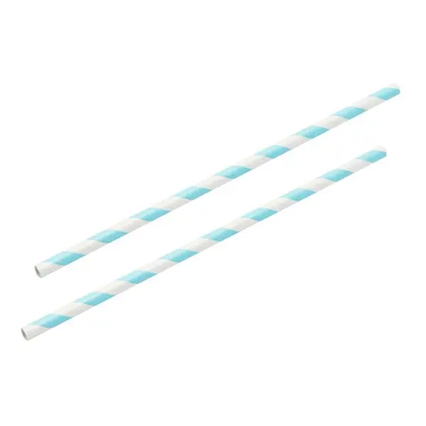 Baby Blue and White Striped Paper Straws 8″ (20cm) 6mm Bore