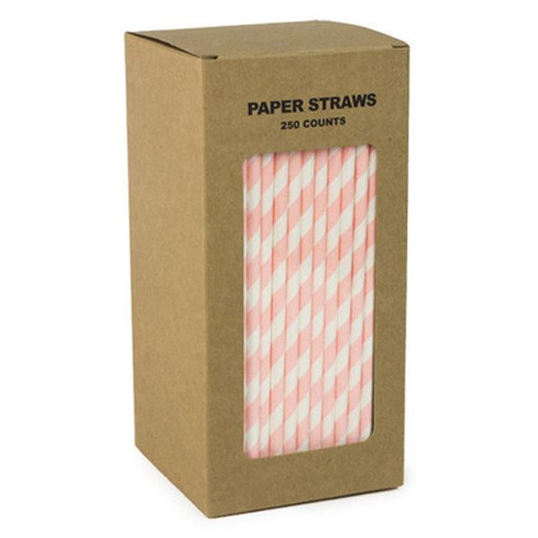 Baby Pink and White Striped Paper Straws 8″ (20cm) 6mm Bore