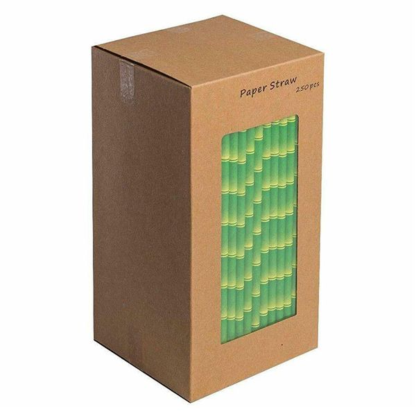 Bamboo Design Paper Straws 8″ (20cm) 6mm Bore