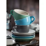 Offered is the Barista Flat White Blue Cup 5.5oz (16cl) – Pack of 12. Expertly fashioned from hard-wearing porcelain, these cups are designed with the barista in mind. Their balanced size and shape are perfectly suited for serving authentic flat whites, while the vibrant blue hue adds a touch of sophistication and elegance to any setting. Designed to perfectly complement the Barista Medium Saucer.