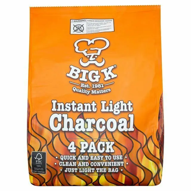 This bulk pack contains Big-K Instant Lighting Charcoal 4kg (12 x 1kg bags). Each individual bag contains FSC-certified instant light lumpwood charcoal, pre-impregnated for incredibly quick and easy lighting. Simply ignite the bag, and you’ll be ready to cook in just 15-20 minutes, completely eliminating the need for any additional lighting fuels. Enjoy up to one hour of cooking time per bag, all contained within dust-proof packaging for a clean and convenient experience.