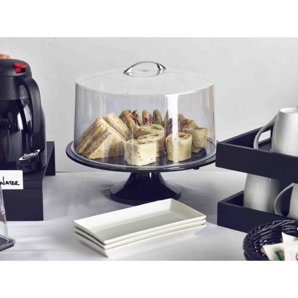 Therefore, we present the **Black Melamine Cake Stand 33cm/ 13″**, a sleek and sophisticated platform designed to showcase your culinary masterpieces. Crafted from premium black melamine, this cake stand combines modern aesthetics with exceptional resilience, making it the perfect choice for busy establishments. Its minimalist design ensures your cakes and pastries take centre stage, allowing their beauty and flavour to shine.