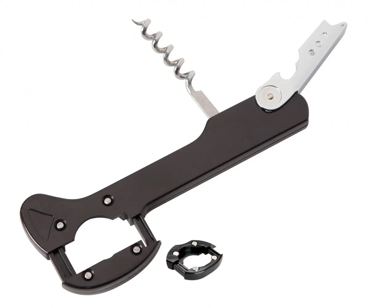- Combines a bottle opener and foil cutter in one compact tool.