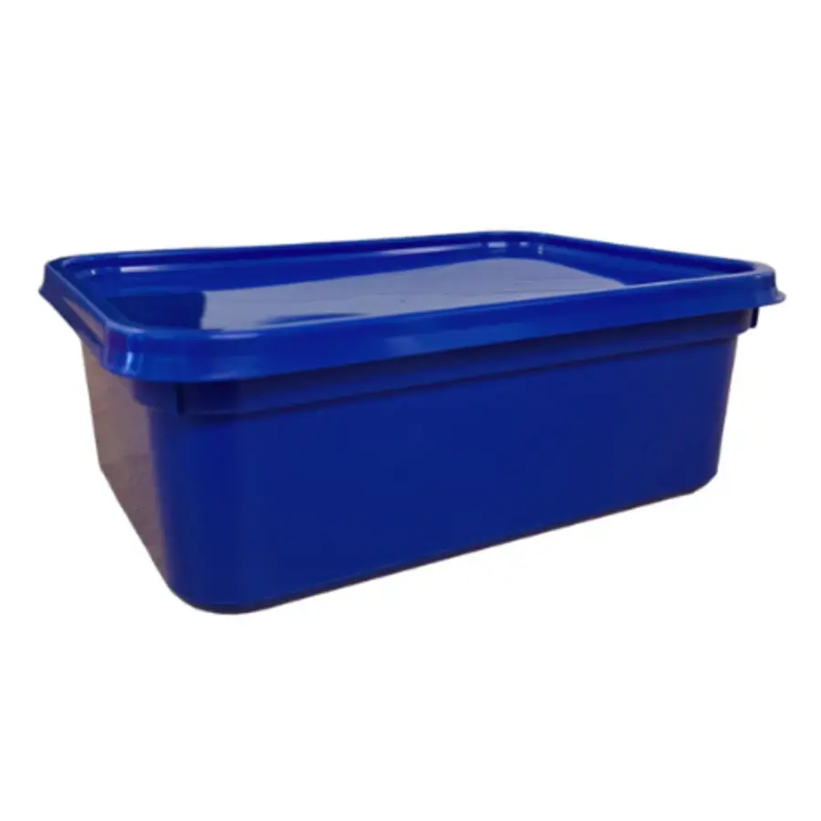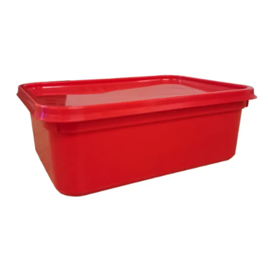 Colour Coded 2 Litre Ice Cream Tubs & Lids are durable, food-grade plastic storage containers with airtight snap-on lids, designed for hygienic commercial food storage and efficient, space-saving kitchen organisation.