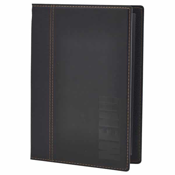 Crafted with a keen eye for modern design, this menu holder features a robust, scratch-resistant PU material that mimics the luxurious look and feel of leather. The double-stitched front cover adds a touch of sophistication, while the subtly embedded “menu” detail provides a professional finish. The innovative inner elastic cord system allows for effortless updating of your menu inserts, ensuring that your customers always have access to the latest offerings.