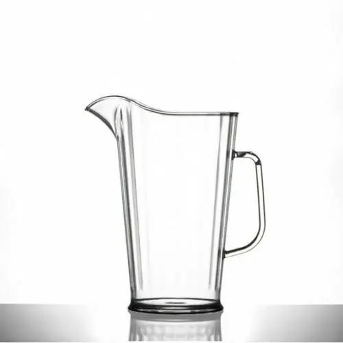 What we offer is the Elite 2 Pint Polycarbonate Jug LCE, a pack of two incredibly durable plastic pitchers, each holding 40oz / 1.25ltr. These virtually unbreakable ribbed pitchers are CE marked at 2 pints, perfect for precisely serving water, juice, beer, or cocktails. Ideal for parties, outdoor events, pubs, and any environment where robustness and reusability are essential. They are glass washer friendly, tested up to 100 cycles, and are also recyclable.