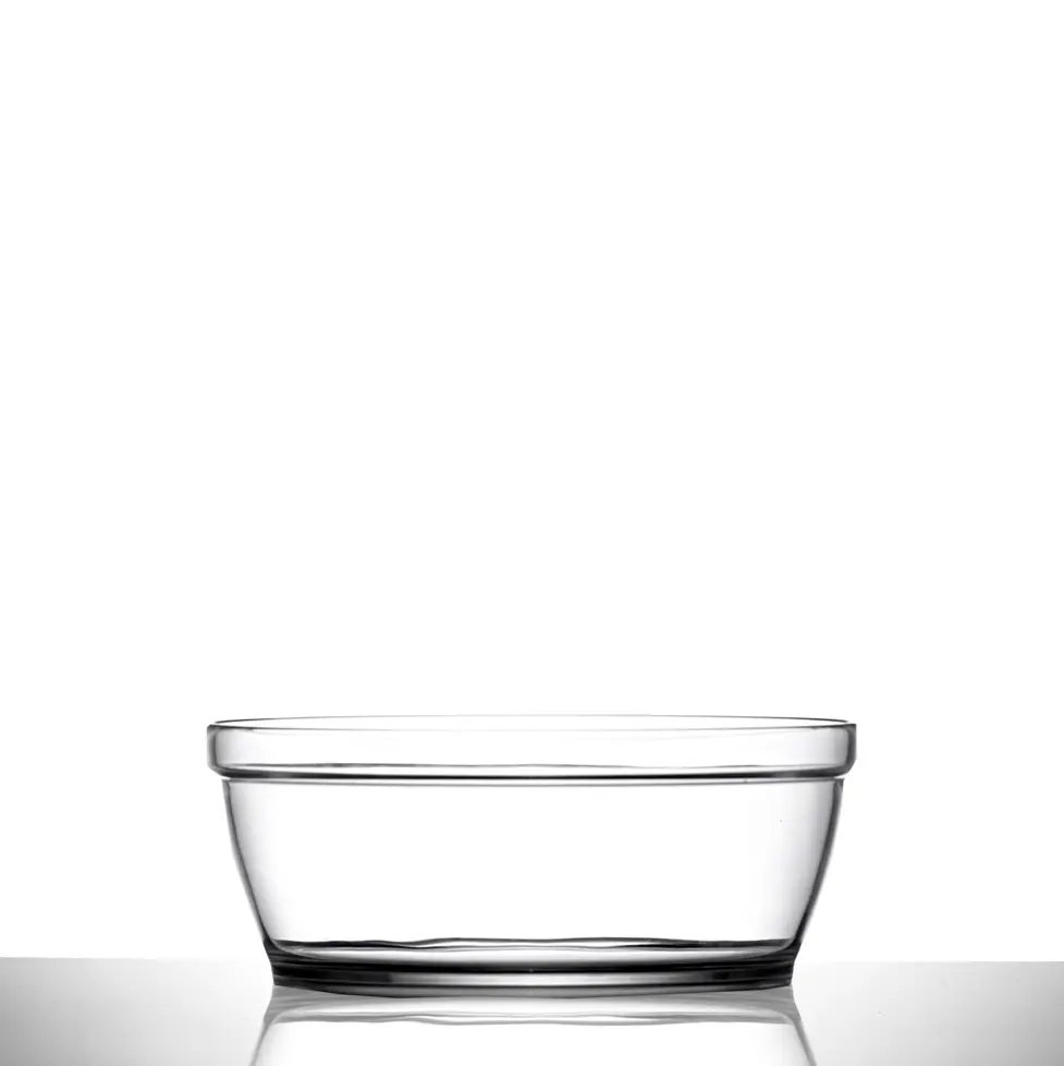Presenting the Elite 5inch Chefs Bowl NS – Case of 48. These clear polycarbonate bowls are manufactured in the UK and designed for ultimate versatility and durability. Virtually unbreakable and glass washer safe for up to 1000 cycles, each bowl weighs just 58g. The top width measures 127mm, the bottom width is 85mm, and the overall height is 51mm. They are reusable, recyclable and can be printed on.
