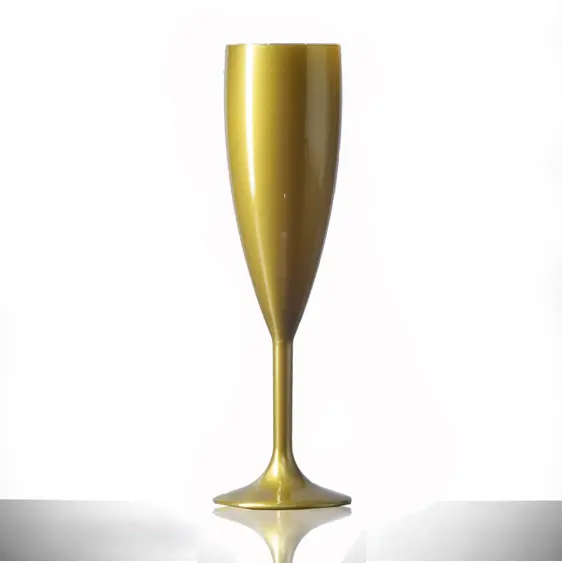 Because you understand that the details matter and that every element contributes to creating a lasting impression, elevate your service with glassware that embodies both luxury and practicality. We Can Source It recognises that the right glassware enhances the experience, reflecting the quality of your brand and the care you provide to your clientele. Through our expert sourcing and commitment to quality, we ensure your events are equipped with glassware that not only looks exceptional but also stands up to the demands of frequent use. This minimises replacement costs and elevates your operational efficiency. We offer premium products that provide exceptional value without compromising on style. Introducing the Elite Premium 6.6oz Flute Gold – Case of 12. Manufactured in the UK, these stunning flutes are crafted from virtually unbreakable polycarbonate, ensuring both safety and remarkable longevity. Their luxurious gold finish adds a touch of glamour to any occasion, making them ideal for celebrations and premium services. These flutes are glass washer safe for up to 500 cycles, reusable, and recyclable, offering an environmentally conscious yet elegant choice. Each flute features a top width of 55mm, a bottom width of 67mm, and an overall height of 219mm, weighing just 76g with a capacity of 187ml (6.6oz).