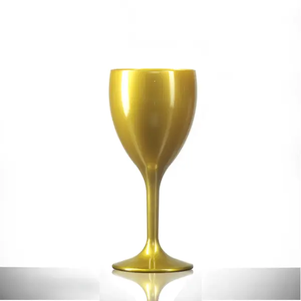 Introducing the Elite Premium 9oz Wine Gold NS – Case of 12. Manufactured in the UK from virtually unbreakable polycarbonate, these exquisite wine glasses offer the refined aesthetic of real glass with exceptional durability. The luxurious gold finish adds a touch of glamour to any occasion, while the robust construction ensures they can withstand the rigours of frequent use. Each glass weighs 86.3g, stands 173.5mm tall, and has a generous 255ml/9oz capacity. They are also reusable, recyclable, and glass washer safe for up to 500 cycles.