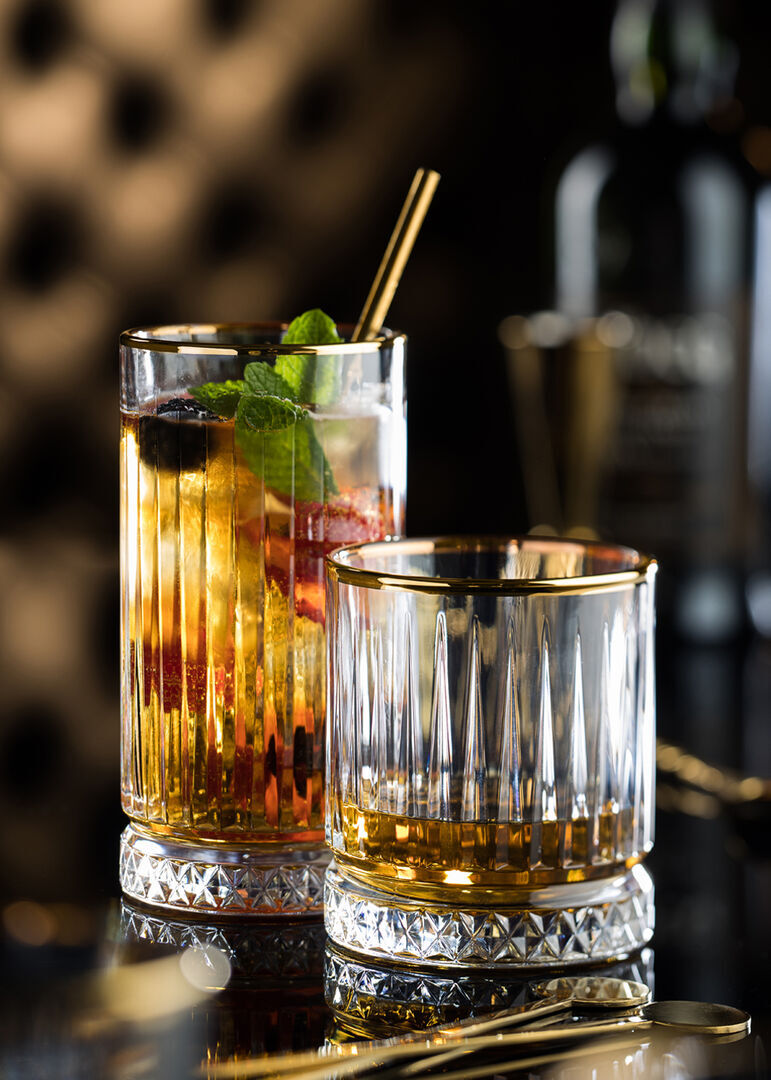 * Elevates drink presentation with a sophisticated gold rim, enhancing the customer experience.