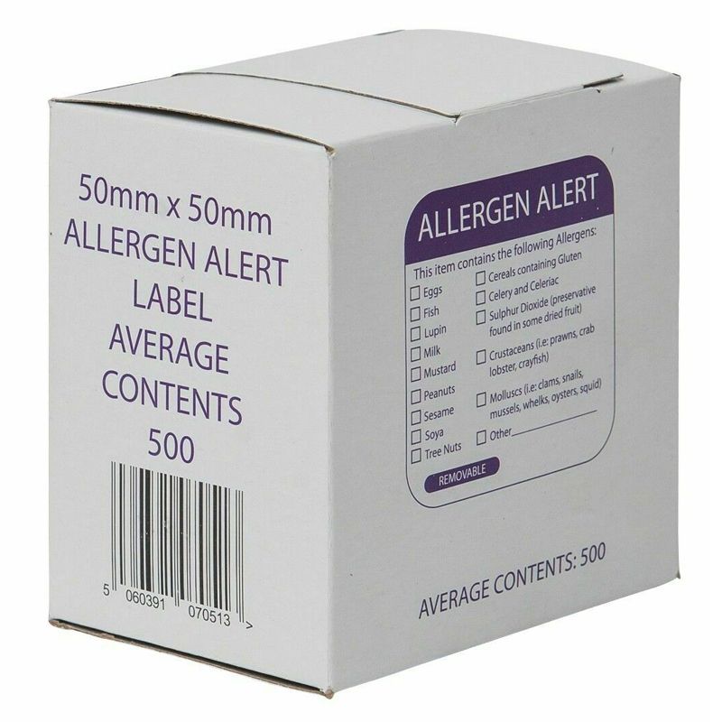 Therefore, we offer our Food Allergy Allergen Warning Label/Catering Sticker 500. These essential labels clearly identify common food allergens, allowing chefs and kitchen staff to easily mark packed food items with potential allergens. Each roll contains 500 square stickers, measuring 50 x 50mm, suitable for application to any flat surface. Ideal for catering businesses, restaurants, hotels, eateries, and home kitchens, these stickers comply with all relevant allergy labelling regulations.