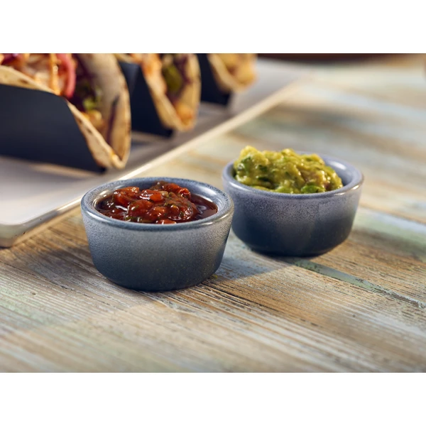 Presented is a pack of twelve ‘Forge Graphite Stoneware Ramekin 1.5oz/ 45ml’. These ramekins feature a sophisticated blended grey colour, creating a contemporary aesthetic to enhance diverse cuisines. Designed for sustained use within busy catering and restaurant environments, they offer superior chip resistance, ensuring sauces, dips, and desserts are served with unwavering elegance.