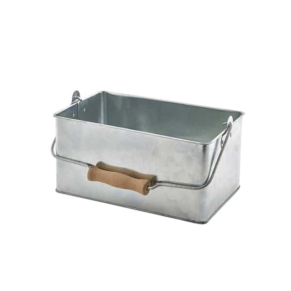 Organise your table essentials with our **Galvanised Steel Rectangular Table Caddy 24.5×15.5×12.5cm**. This robust caddy blends modern design with rustic charm, offering an elegant yet practical solution for organising condiments, cutlery, and other table essentials in your café, restaurant, or bar. Crafted from hard-wearing galvanised steel and featuring a convenient wooden handle, it presents a stylish and durable alternative to traditional caddies.
