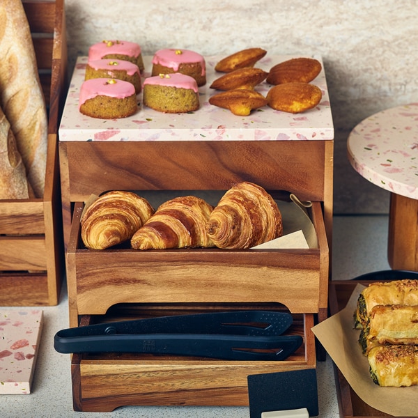 The GenWare Acacia Wood 3 Tier Display Stand is designed to elevate food presentation for any buffet or display within hotels, cafes or coffee shops. Crafted from durable acacia wood, it ensures longevity and resilience, ideal for the demands of a bustling setting. Each drawer provides ample display space for pastries, cakes and breads, offering both functionality and visual appeal. When not in use, the drawers conventiently retract, saving valuable space for storage. The display stand also has a GN 1/2 footprint which ensures consistency with other GN buffetware.