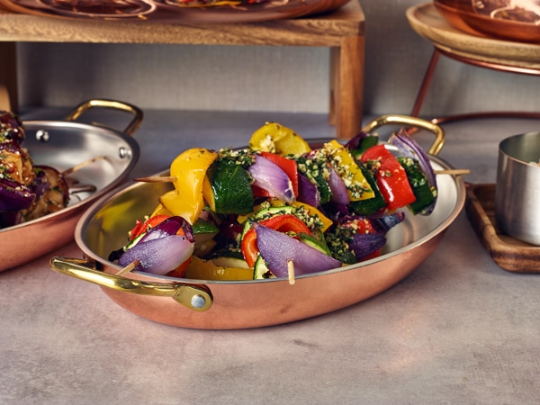 * Secure brass handles provide a comfortable grip and enhance the dish’s overall aesthetic.