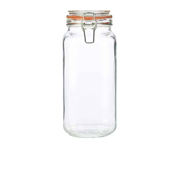 Introducing the Genware Glass Terrine Jar 2L – Pack of 6. These jars are an elegant and practical solution for preserving and showcasing your culinary delights. Ideal for creating visually appealing food displays in cafes, pubs, and restaurants, they also offer a practical storage solution for ingredients and snacks, ensuring optimal freshness. Each jar is manufactured from durable glass and features a robust rubber seal with a secure clip, creating an airtight environment to minimise waste and maximise flavour.