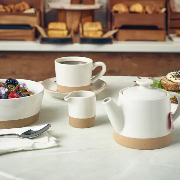 That’s why we’re proud to offer the GenWare Kava White Stoneware Teapot 48cl/ 16.8oz – Pack of 6. These teapots embody understated elegance, featuring an off-white glaze contrasted with a natural, unglazed edge. Their sleek, modern design perfectly complements the contemporary aesthetic of bistros, cafes, and eateries. Crafted from high-quality stoneware, these teapots are built to withstand the demands of a busy commercial environment.