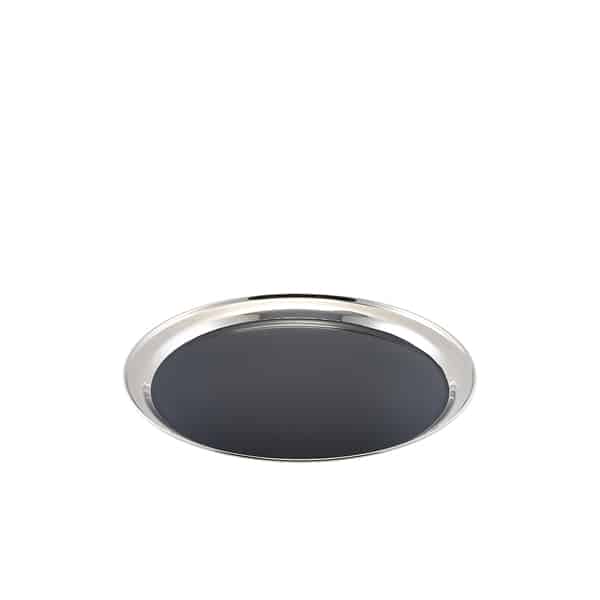 Presenting the GenWare Non Slip Stainless Steel Round Tray 14″. This tray expertly blends practicality with refined aesthetics. The integrated non-slip surface provides unparalleled grip, significantly reducing the risk of spills, even when handling multiple drinks or heavier items. Crafted from premium stainless steel, this tray is designed for the rigours of a busy catering environment, resisting stains and maintaining its polished sheen. The generous 14-inch diameter offers ample space for serving drinks, appetisers, or entrees with poise and assurance.