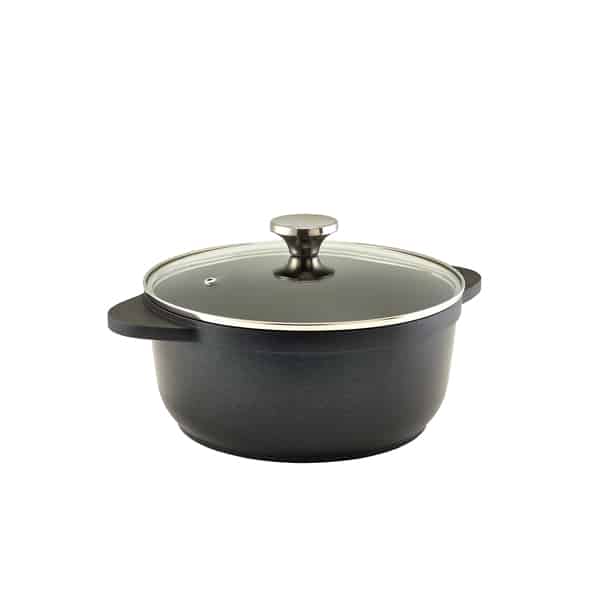 Therefore, we are proud to present the GenWare Non-Stick Cast Aluminium Casserole Dish 24cm. This casserole dish is expertly crafted from robust die-cast aluminium, providing a lightweight yet exceptionally strong and durable alternative to traditional cast iron. It boasts superb heat retention and distribution, ensuring your culinary creations are cooked to perfection. Suitable for oven and stovetop cooking, including induction hobs, it features a premium Greblon C3+ non-stick coating for effortless food release and easy cleaning. Integrated handles ensure secure and easy manoeuvrability, and for added convenience, it’s also dishwasher safe. (Please note: Matching tempered glass lid sold separately).