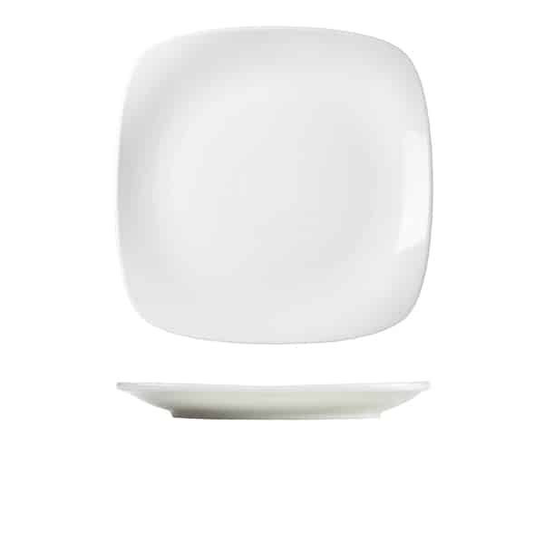 Genware Porcelain Rounded Square Plate 27cm/ 10.5″ – Pack of 6