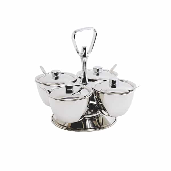 We supply catering and hospitality businesses with durable, stylish, and, above all, reliable solutions. That’s why we recommend the **GenWare Stainless Steel Revolving Relish Server 4-Way**. This server allows you to present a selection of condiments, sauces, and chutneys in an accessible and sophisticated way. Its smooth revolving design invites interaction, allowing diners to effortlessly choose their preferred accompaniments, thereby enriching their overall enjoyment.