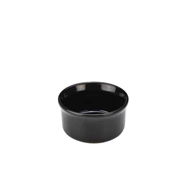 What we’re offering is a pack of 12 GenWare Stoneware Black Ramekins, each measuring 6.5cm/2.5″. These ramekins are crafted from durable stoneware, offering chip resistance comparable to porcelain, and their bold black colour provides a stylish contrast, making them ideal for a range of culinary presentations.