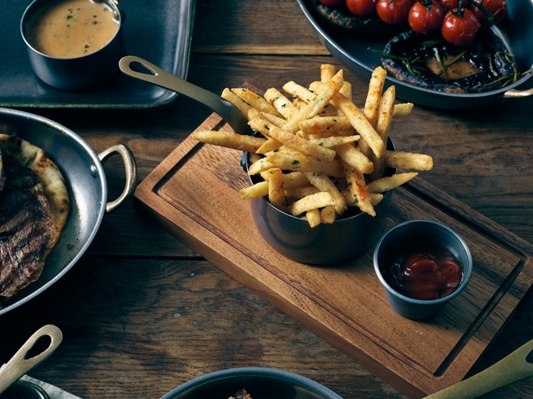 * Creates an industrial-chic aesthetic for memorable food presentation.