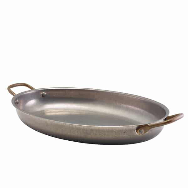 We meticulously source items that combine practicality with visual appeal, allowing you to present your dishes in a way that enhances their flavour and elevates the dining atmosphere. The GenWare Vintage Steel Oval Dish allows you to create an industrial aesthetic for your restaurant.