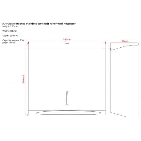 This Half Hand Towel Dispenser is designed for efficiency, holding approximately 330 paper towels to minimise refills. Measuring 260mm high, 280mm wide, and 100mm deep, it provides a compact yet highly practical solution for a wide range of washroom environments. The brushed stainless steel finish is not only stylish but also resists fingerprints and smudges, ensuring a consistently clean and professional appearance.