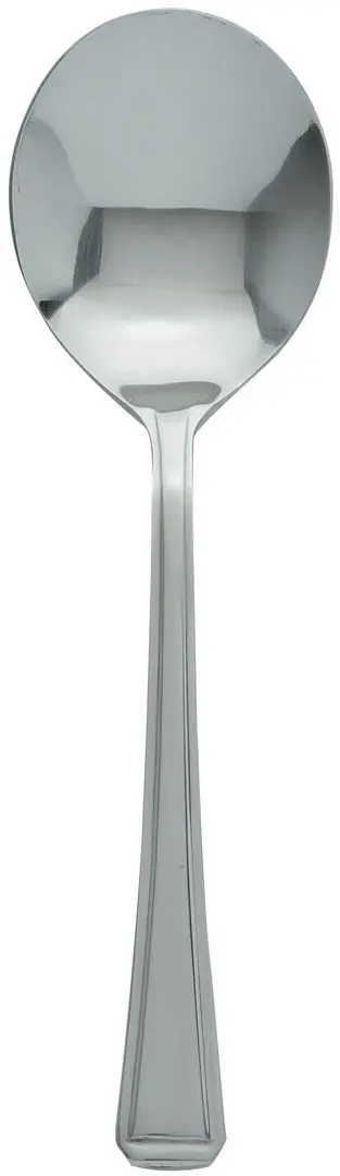Introducing the Harley Soup Spoon – Pack of 12. These spoons are meticulously fashioned from premium 18/0 stainless steel, guaranteeing both exceptional durability and a beautifully polished appearance. The Harley design boasts a delicate, double-stepped pattern with gracefully flat panelled handles, adding a touch of understated elegance to any table. Each pack contains twelve spoons, ensuring an ample supply for daily service or special occasions. Optimise your dining experience with a touch of sophistication.