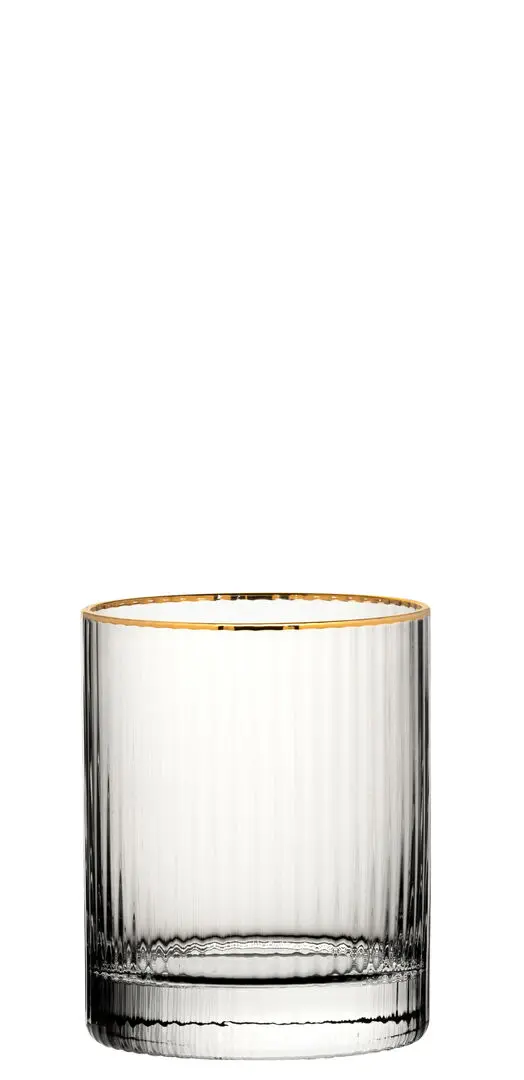 What we offer is a set of six Hayworth DOF (32cl) Gold Rim glasses. These glasses are part of the achingly glamorous Hayworth range and feature a vertical optic design that enhances their stunning presence. Each glass is handmade and expertly crafted, making them perfect for serving a variety of cocktails and mixed drinks.