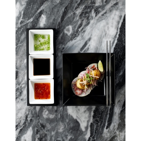 Introducing the Luna Stoneware Black Square Plate, measuring 26cm/10.25″ and available in a pack of 6. These plates provide a contemporary canvas for your culinary creations. The matte black finish offers a striking contrast to vibrant dishes, making them particularly well-suited to Asian, Asian fusion, and Mediterranean cuisines. Crafted from robust stoneware, these plates offer excellent chip resistance, and are designed to withstand the rigours of a busy restaurant environment. Optimise your table setting with the Luna Stoneware Black Square Plate 26cm/ 10.25″ – Pack of 6.