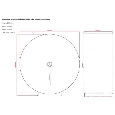 Because washroom efficiency reflects your commitment to a positive user experience and streamlined operations, the Mini Jumbo Toilet Roll Dispenser is a vital addition to any high-traffic environment. At We Can Source It, we recognise that the right washroom accessories can significantly impact hygiene standards and maintenance costs. That’s why we leverage our expert sourcing capabilities to provide robust and reliable dispensers, carefully selected for their durability, ease of use, and long-term value. The Mini Jumbo Toilet Roll Dispenser, finished in brushed stainless steel, is constructed from hard-wearing 304-grade stainless steel. Designed for wall mounting and equipped with a secure locking mechanism, this dispenser is perfectly suited for accommodating mini jumbo toilet tissue paper with core sizes of 2 1/4″ and 3″. Measuring 268mm (height) x 260mm (width) x 126mm (depth), this dispenser (Code: BS01) offers a blend of functionality and modern aesthetics.