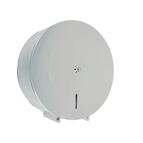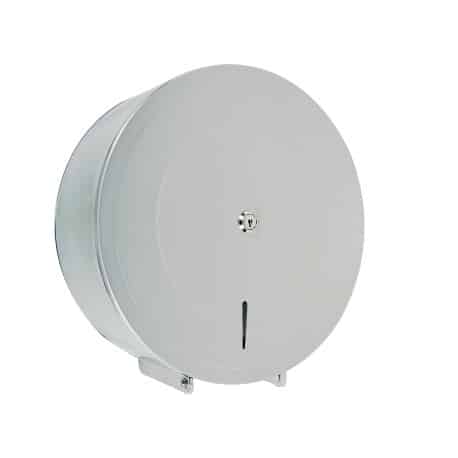 * Modern and sleek design: The silver finish enhances any washroom decor, providing an attractive and professional appearance of the Mini/Midi Jumbo Toilet Roll Dispenser.