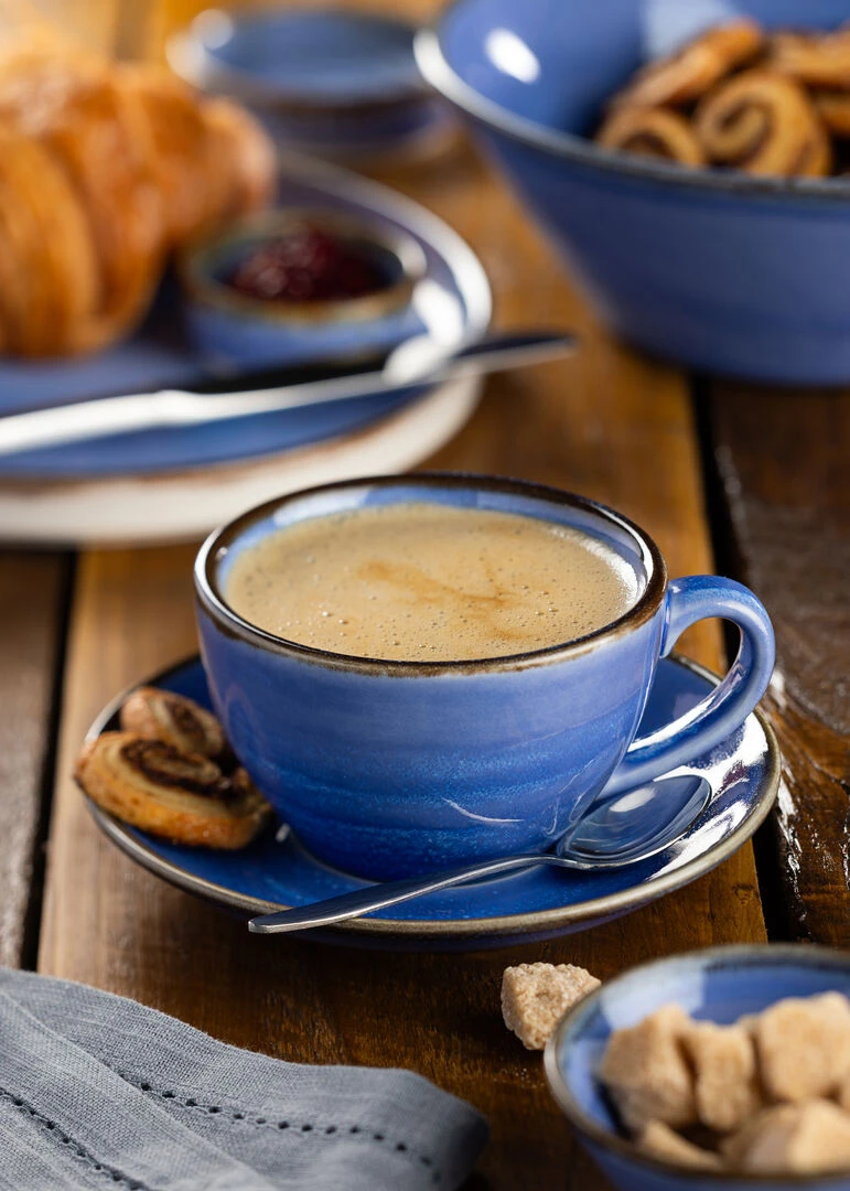 * The Murra Pacific Latte Saucer 6″ (15.5cm) – Box of 6 is a cost-effective way to enhance your table presentation.