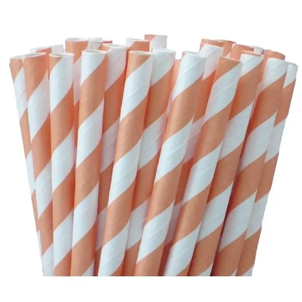 Orange and White Striped Paper Straws 8″ (20cm) 6mm Bore