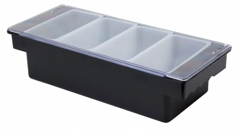 4 Part Plastic Bar Storage is a durable, space-saving organiser designed to keep garnishes and condiments fresh and organised. It features four removable inserts and a hinged lid for easy access and hygiene.