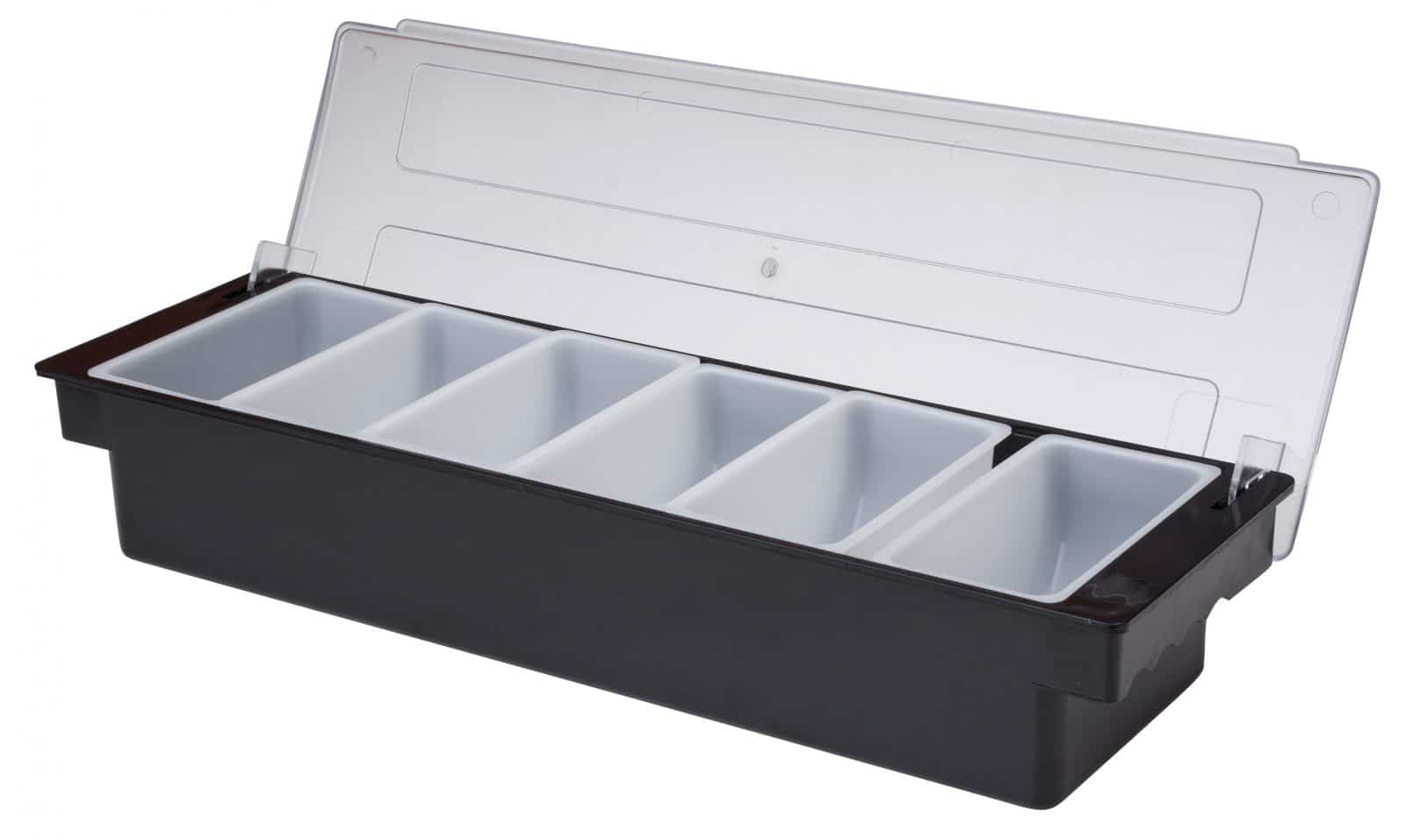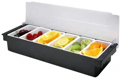 * Keeps garnishes organised: Six individual compartments provide designated storage for a variety of fruits and garnishes, ensuring an orderly and efficient workspace.