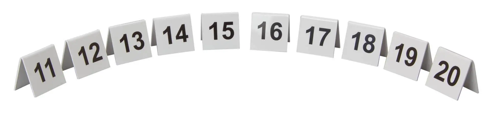 Plastic Table Numbers Stand Tent Shaped White for Bar Restaurant Table 11-20 Set