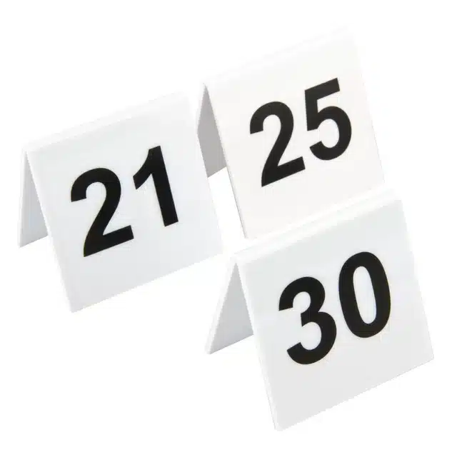 Plastic Table Numbers Stand Tent Shaped White for Bar Restaurant Table 21-30 Set